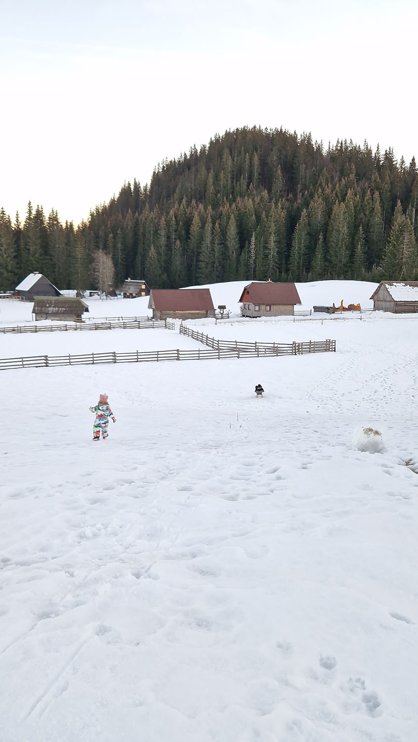 We left Zagreb on Friday, a non-working day (Epiphany). The trip started early in the morning because, before arriving at Pokljuka, we wanted to walk around Bled and Lake Bohinj, which I definitely recommend to you. They’re on your way if you go to Pokljuka and are a great introduction to a real winter weekend! We also had lunch there, so we came to Pokljuka rested and full. This gave us the energy to immediately throw ourselves into what we came for, which is snow! We put on our ski suits, took out our sleds, and went into action, from which we returned to our warm house. Because of the perfect atmosphere, we lit a fire and slept like logs since 8 p.m. What fresh air, nature, and action in the snow do – not only for kids, but also for us adults!