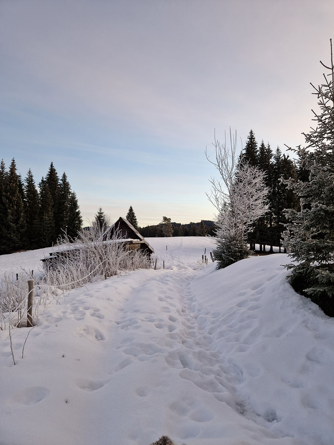 After skiing and snowboarding, we set out to explore the surrounding forests, which for me, who likes to brag about my knowledge of nature, ended up quite amateurish – namely, I managed to fall into knee-deep mud that “hid” near the stream. I must admit, I was really scared because it just pulled me in like in a horror movie. Don’t let that happen to you because it’s not a crazy good feeling. Watch where you’re going, and if you see a stream nearby, know that there is no little bunny waiting for you there! When you’re not looking down, look around, because the scene is truly idyllic. All around us were small houses or huts that looked wonderful under the snow, literally as if you had stepped into a fairy tale. Not to mention fresh air and peace – all of us who live in the city need that!