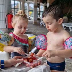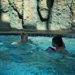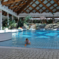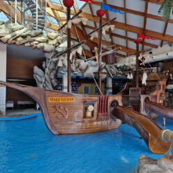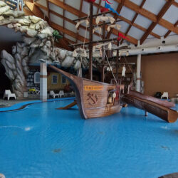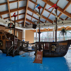 I had no idea how big the indoor pool area was. I admit, I expected it to be smaller, so I was puffed up even before I entered the pool! Besides being huge, the pool is very cleverly and strategically built. In the big pool (the one for adults), the kids practiced aqua aerobics to the music of Enrique Iglesias (and gave us all a good example to get back to exercise). On the other wing, there are pools for children (larger and smaller). Of course, pools are not “alone”! There are slides for older and slightly older children and a pirate ship for the smallest kids.