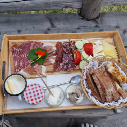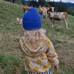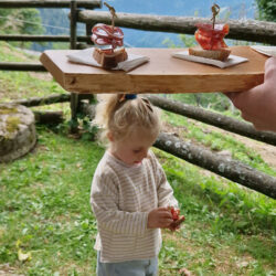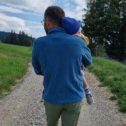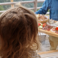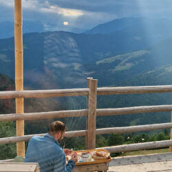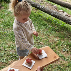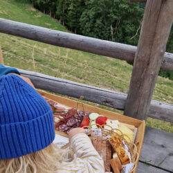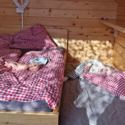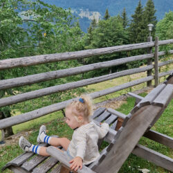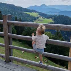 Još jedan savjet – za manje klince poput Liv, furajte i nosiljku. Nas je naša spasila kad bi se Liv umorila, iako je velik dio puta prehodala solo. Išli smo u smjeru Malog sela gdje ima puno tzv.koča s domaćom hranom koju, jasno, možete kupiti i za doma. Prodaju se sir, štrukle, štrudle, sirne štrukle s umakom od šumskog voća (prefini domaći specijalitet). Teren je lagan za šetnju i super za klince. Ručali smo u planinskom restoranu u kojem nas je dočekao pravi old school pastir, atrakcija i maskota čitave planine. Kad je zasvirao u rog, Liv je odvalila! Klopali smo domaće kobasice s ričetom i zeljem, a Liv nam nakon ručka zaspala na klupici: od klopanja, igre i planinskog zraka!