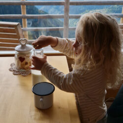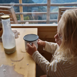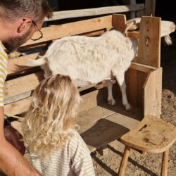 Kad smo se vratili na smještaj u kmetiju Visočnik, već budnu Liv je dočekalo pravo iznenađenje: mužnja njene frendice koze! To je trebala vidjeti još ujutro, no naravno da smo svi nenamjerno prespavali. Druga prilika došla je kasnije. I u tome se okušala i bila oduševljena: baš kao i ja što je to iskusila! Nakon finih pastrva za večeru, otišli smo spavati u našu glamping kućicu: jer sutra nas je čekala Logarska dolina!