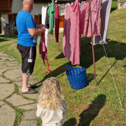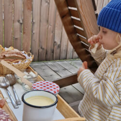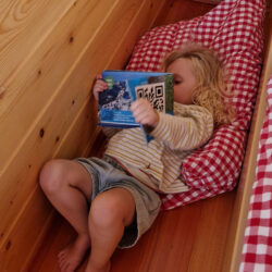 Tekuća voda za osobnu higijenu? Hvala što me pitate, eto je na koritu – baš kao nekada u svakom starom selu ili lektiri s tragičnim junakom! No naravno da ovdje ništa nije bilo tragično, čak štoviše: do daske smo uživali u tom old school ugođaju, a Liv je doslovce odvalila od sreće što je zube prala ispod vedrog neba. Inače nema problema s pranjem zubi, no ako imate klinca koji to baš ne voli: eto vam ideja, isprobajte korito! ☺