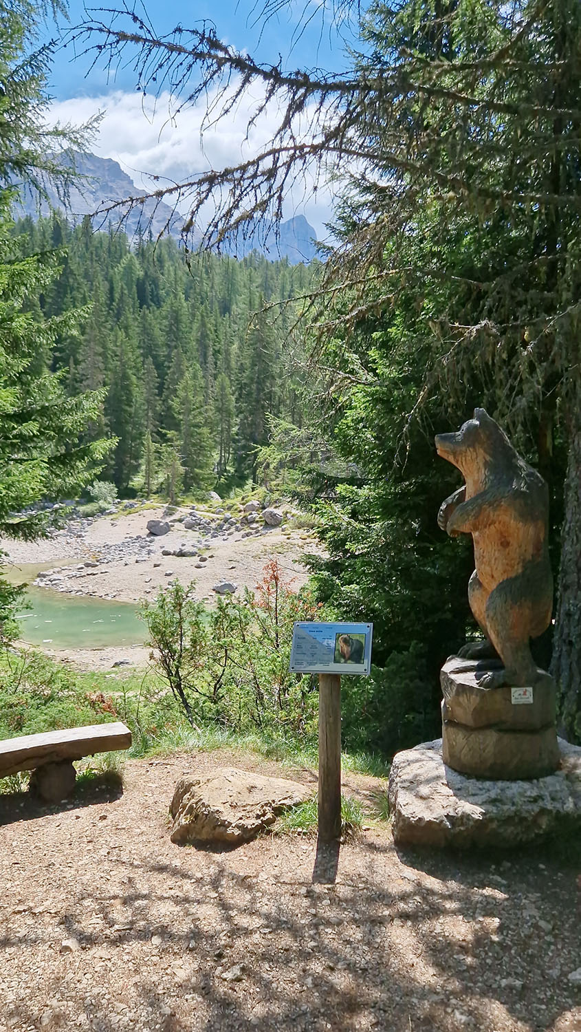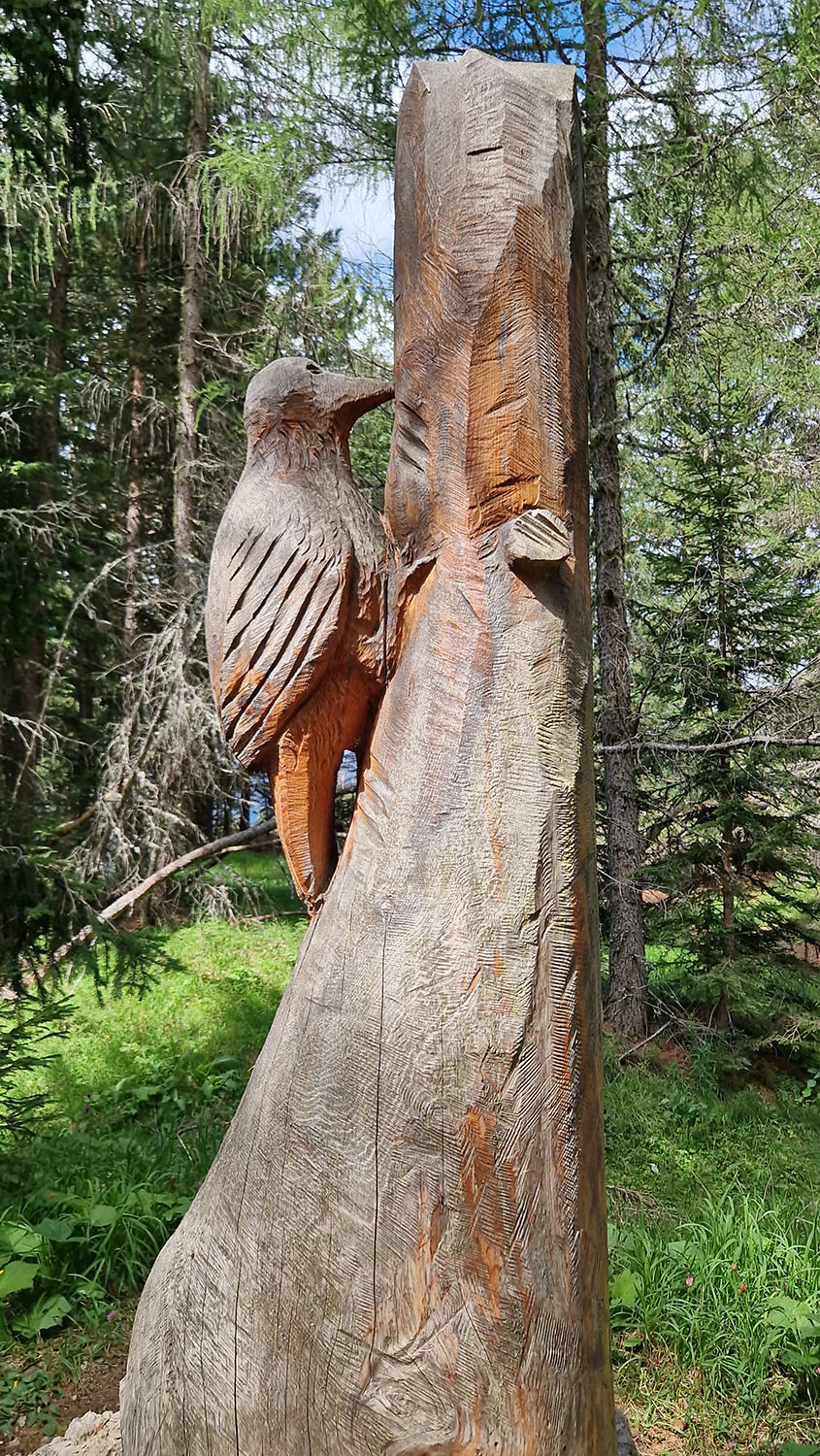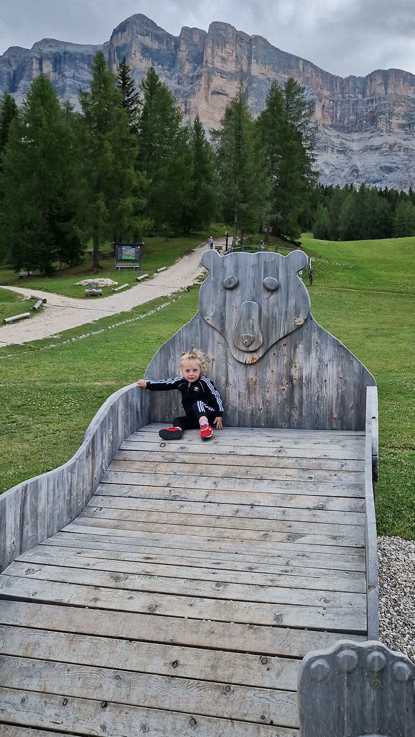 Ništa gora nije niti hotelska okolica koju smo spremno istražili sljedećega dana. Naravno, cilj su bila brda i planine, ali i obližnji Summer park La Crusc za klince, avanturistički park za zabavu, istraživanje i naravno, prekrasnu prirodu u kojoj se sve to odvija. Do blizine Summer parka se može doći autom, a onda sjedečnicom do gore. A gore smo našli pravu pustolovinu! Park je veoma zabavno i atraktivno uređen, a osobito nas je razveselila mala dječja planinarska staza s prefora punktovima na kojima su glavni likovi Livini najbolji frendovi – životinje. Doduše, drvene, ali životinja je životinja (i frend je frend 🙂 ). Svaki punkt na fora način predstavlja životinje tog podneblja, a pritom je još totalno eko i vrlo interaktivan. Punktovi su osmišljeni po principu lova na blago u kojem klinci, sljedeći kratke i slatke upute putem drvenih žigića, moraju dobro istražiti punktove ne bi li našli fora iznenađenje. Ne, to nije slatkiš ili nešto slično: već neko novo znanje o životinji s punkta! Tu su i zabavne igre kao što su špiljice u koje se možeš zavući u potrazi za zmajem, marble run i igre bacanja loptica, ali i šarmantni punktovi idealni za dekice, piknik i odmor. Sve na bazi drveta i bez trunka plastike: svaka čast na tome i nek’ bude svuda!