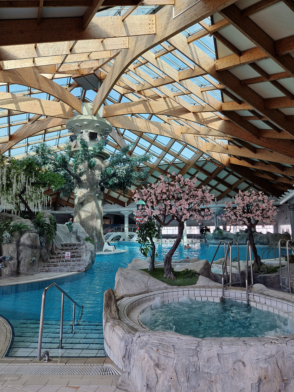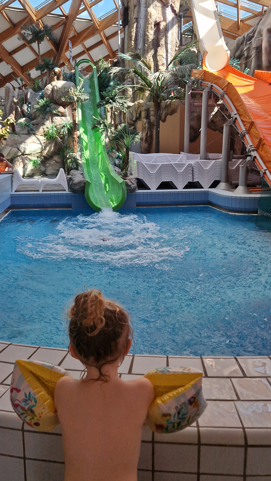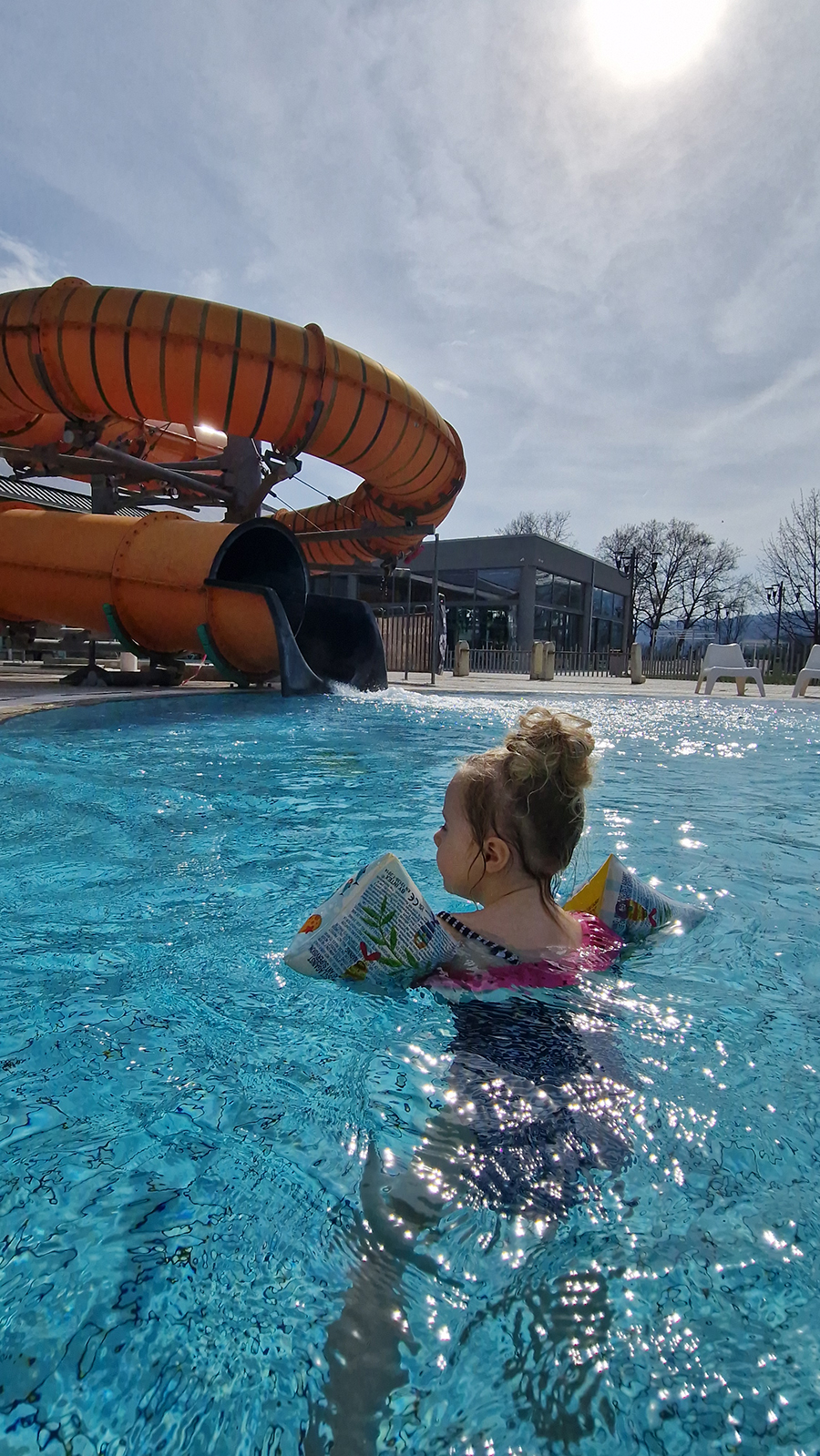 Jednako su „karakterni“ i sami bazeni. U onom srednjem se svakih pola sata puštaju umjetni valovi koji su pun pogodak za sve – dovoljno su mali da ne poklope mlađe klince, no dovoljno veliki da oni stariji osjete da ih „nose“. U cijeloj priči je i vanjski bazen uz kojeg se ulazi iz unutarnjeg (ili s tobogana, ako ste poput nas). Svi bazeni su veoma čisti i uredni, a posebno me oduševilo što se ne osjeća onaj jaki miris klora koji obično „prati“ sve bazene.